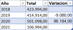Como vemos en la tabla del INE, efectivamente, se produce una variación al alza entre 2019 y 2020, de aproximadamente 86.000 personas. No hemos calculado la variación anual entre 2020 y 2021, ya que solo se disponen de datos de 10 semanas de 2021.