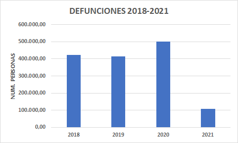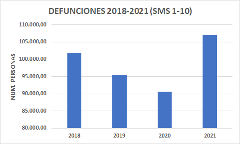 Ya 2021, presenta un aumento de defunciones en las primeras diez semanas respecto a 2020, de casi 16.500 personas. De mantenerse este ritmo, el numero de defunciones de 2021 respecto a 2020 sería superior en unas 80.000 personas.
