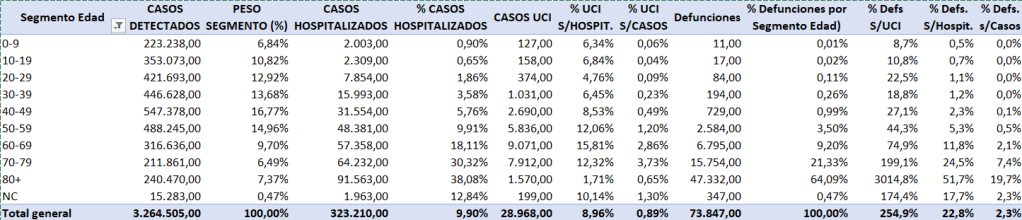 Estos datos nos dicen, por tanto, que estamos ante una situación sanitaria que empeora exponencialmente con la edad y que se enfoca mas intensamente en las personas con una edad superior a los 60 años.