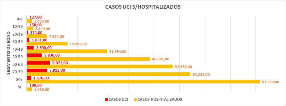 Estos datos, añaden un punto nuevo que consolidaremos mas tarde pero que podemos anunciar aquí: El fenómeno COVID afecta con mayor virulencia cuanto mayor es el paciente. La problemática de gestión sanitaria se enfoca en los casos graves del segmento de edad de entre 50 y 79 años, ya que en los casos de mas de 80 años, solo el 5% pasa a UCI.