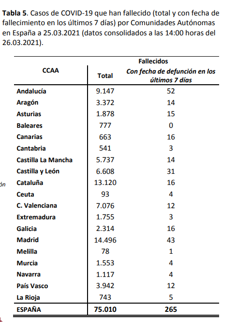 Por mero afan cientifico, permitame el lector presentar algunos datos «indiscutibles», pues los presenta el propio ministerio de sanidad en su pagina web, en su informe reciente del 26/03/2021 (Actualizacion_340_COVID-19.pdf (mscbs.gob.es)).